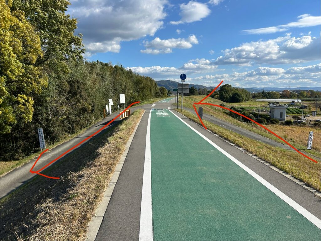その他のルートは2つあって、ルート1は近いけど狭い(大部分はすれ違えないほどでもないけど狭め)。ルート2は比較的広い道が続きますがちょっと回り道になります。