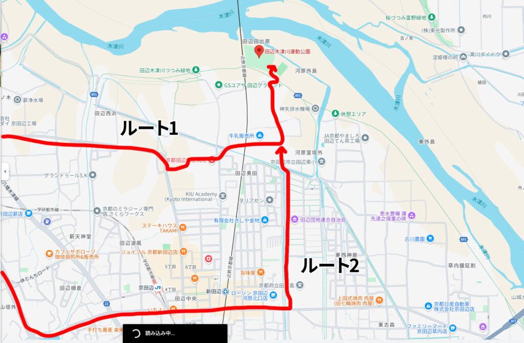 田辺木津川運動グランド(運動公園)は木津川河川敷運動広場とは違うので注意が必要です。(試合詳細でも間違ってたりする。)