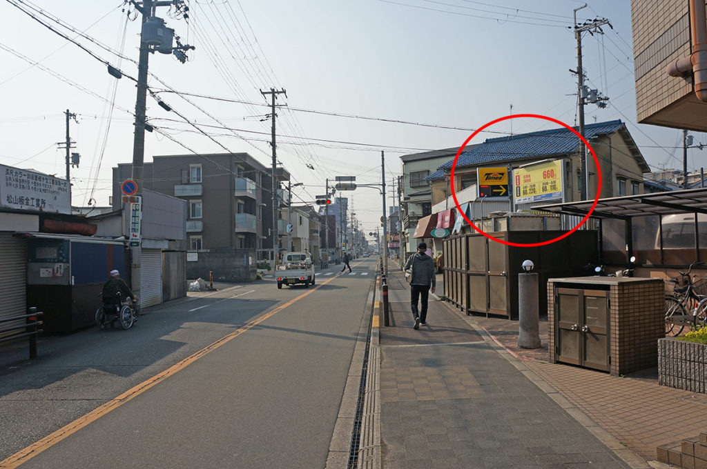 長尾から見ると大日イオンの手前で左折するのですが、その方向から小学校を越えてすぐ、右手にコインパーキングが2つあります。